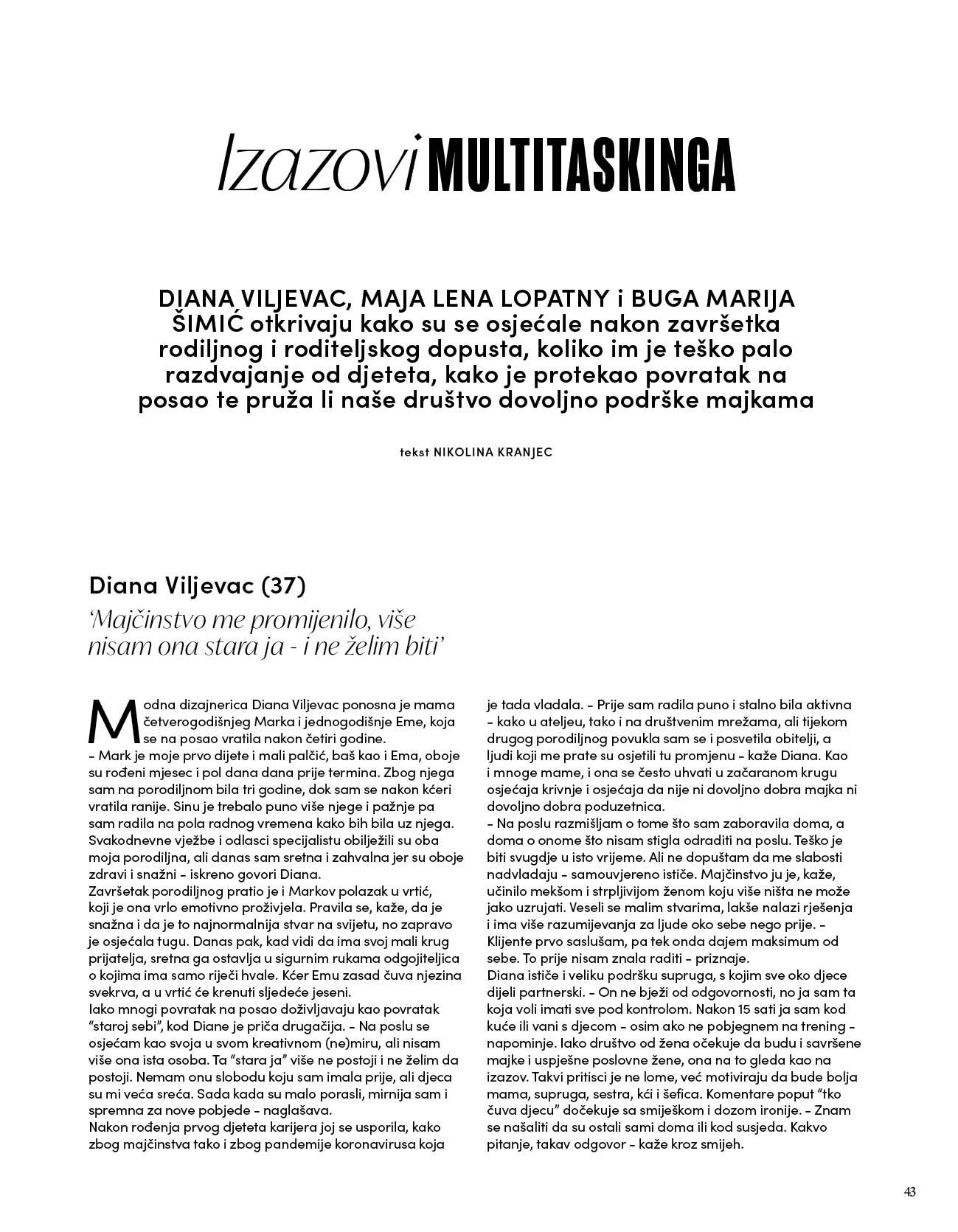 U nedavnom razgovoru za Gloriju Mini imala sam priliku otvoreno progovoriti o promjenama koje mi je donijelo majčinstvo, o povratku na posao nakon nove životne uloge te o balansu između obiteljskog i poslovnog života. Pitanja su se posebno doticala toga kako sam spojila majčinstvo s poslom modne dizajnerice, što mi je donijelo puno introspektivnih trenutaka i novih razmišljanja. Iskreno sam podijelila kako me majčinstvo promijenilo – više nisam ista osoba kao prije, a to je promjena koju prihvaćam s ponosom. Naučila sam prilagoditi ritam života, pronaći novu snagu i postati svjesna kako nas svako iskustvo oblikuje. U mom slučaju, to se posebno vidi i u kreacijama koje stvaram.