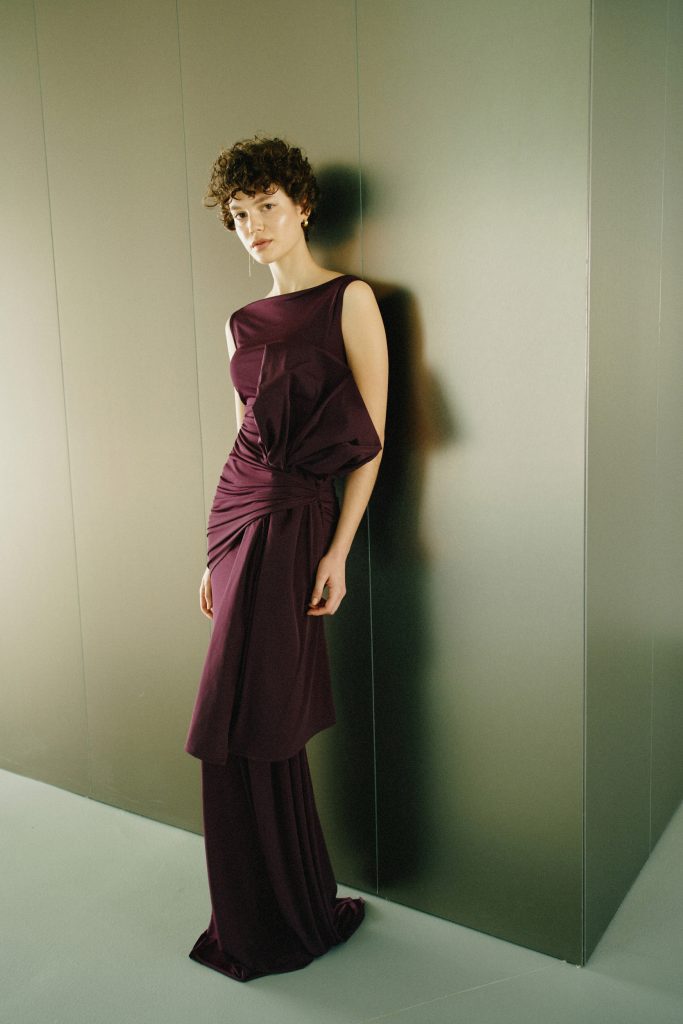 Minimalistička, profinjena haljina koja prati liniju tijela i daje sofisticiran dojam. Ima dodatak mašne koja se može skinuti i dodati po izboru. Mašna je izrazito elegantan dodatak koji daje poseban šarm haljini.