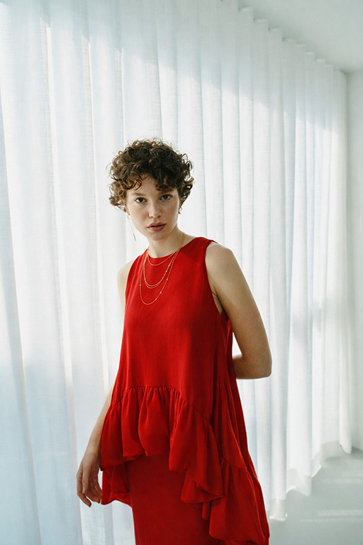 Vratni izrez obogaćen je voluminoznom mašnom.